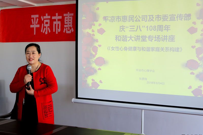 講座由平?jīng)鍪行睦韺W(xué)會會長、國家執(zhí)業(yè)醫(yī)師、國家二級心理咨詢師、EAP高級講師張素珠老師主講,張老師以“婦女心身健康與家庭及社會和諧”為主題,作了深入淺出,激情洋溢的講座,講座結(jié)合專業(yè)的學(xué)識和通俗的語言,系統(tǒng)講解了女性自出生到婚育各個成長階段的心理健康養(yǎng)護(hù)和相關(guān)心理問題矯正知識,深入分析了女性心理發(fā)展與家庭、社會的關(guān)系,結(jié)合現(xiàn)實案例解答了普通家庭生活中常見的心理和家庭關(guān)系問題。