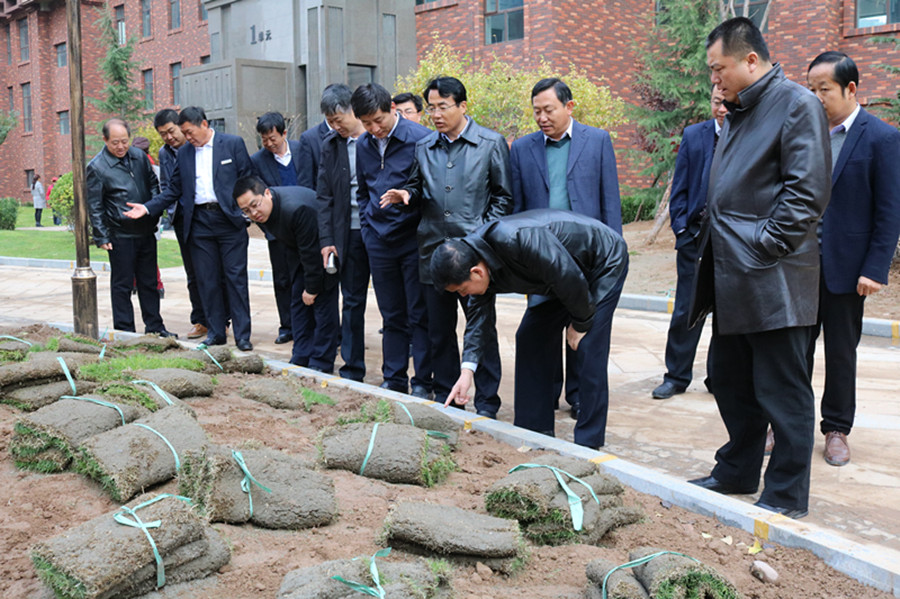現(xiàn)場查看綠化施工情況